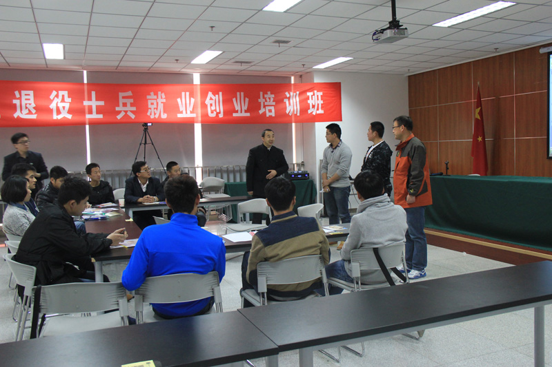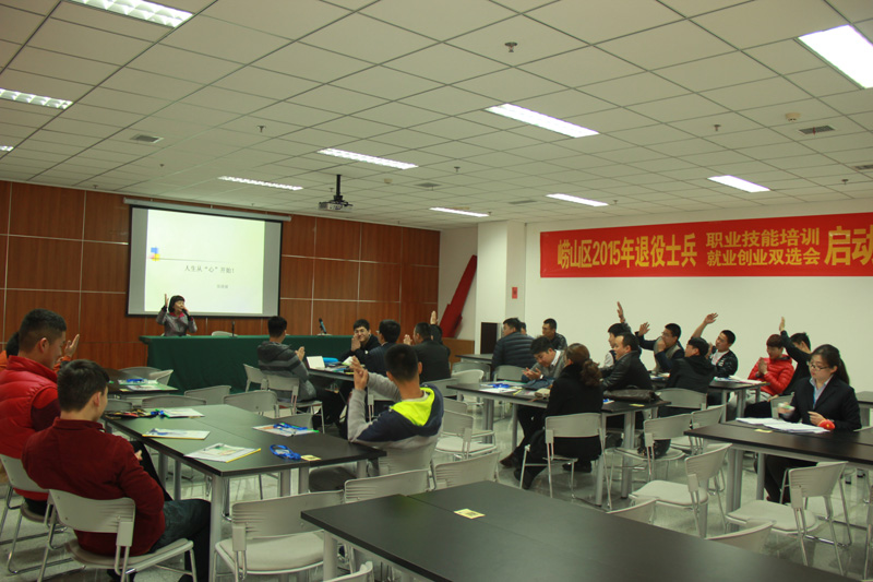 在培训课上,闫生老师以《职业生涯规划》为题,从退役军人的心理、军人素质、何去何从、心态决定工作、行行出状元、游戏见人生、不断学习是成功的基石等几部分为退役士兵们上了生动的一课。在授课过程中,闫生老师还与大家一起互动,进行了拼纸游戏和模拟招聘游戏,并让大家踊跃发言,讲述自己的观点,士兵们也纷纷发言讲述述对自己未来工作规划和展望。